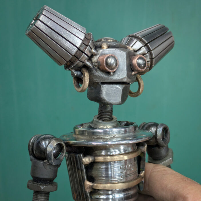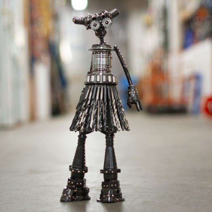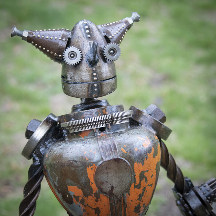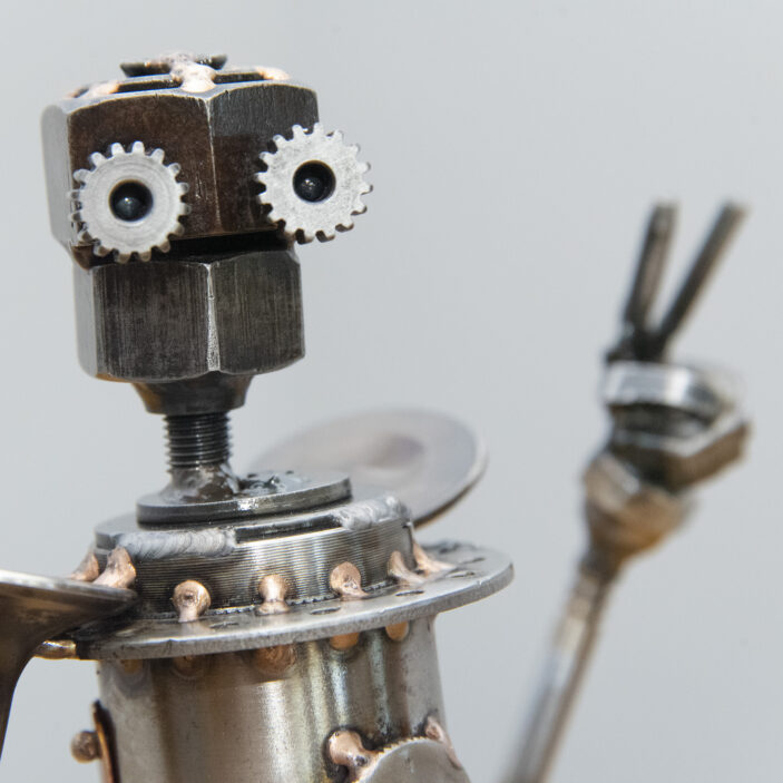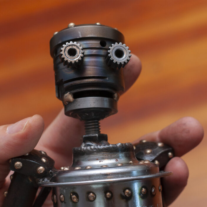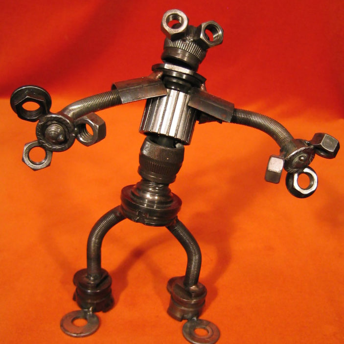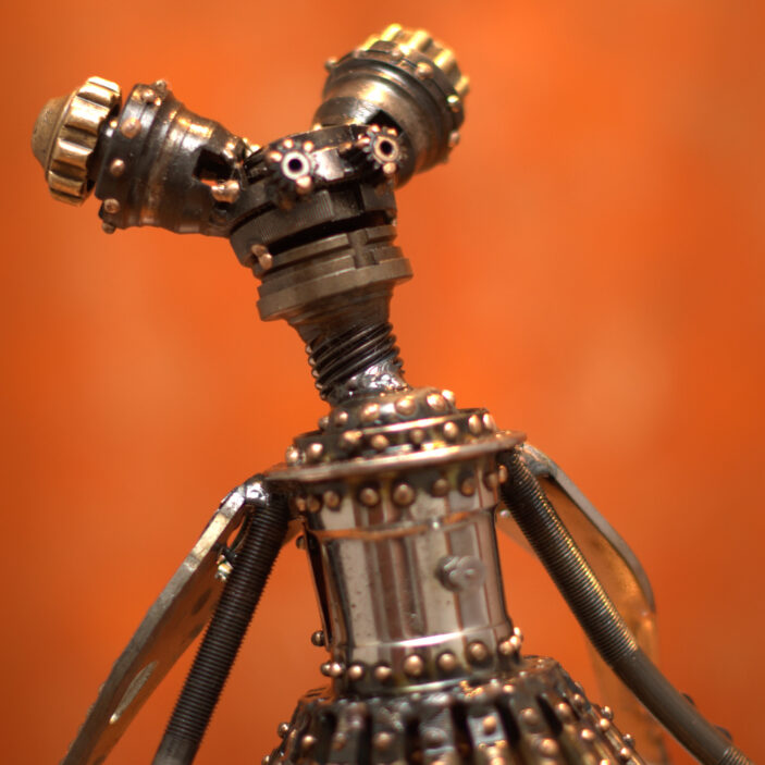 I'm a metal sculptor known as Skunk: I have been honing my craft in transforming interesting and beautiful repurposed metal parts, working them with a hacksaw, a file, a sturdy vise, and a finely wielded TIG welder to create works that embody feelings of wonder, joy, and peace – each with the same mission – to endure for centruries as tireless reminders to hold dear all the important parts of being human.