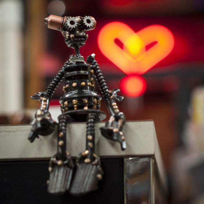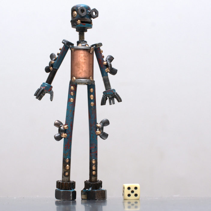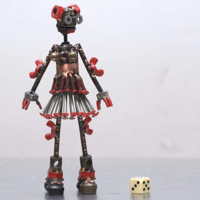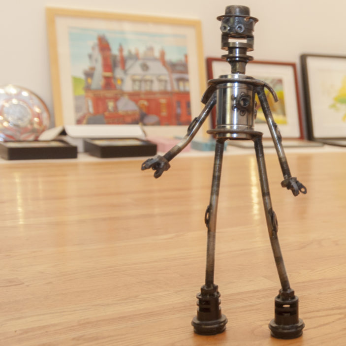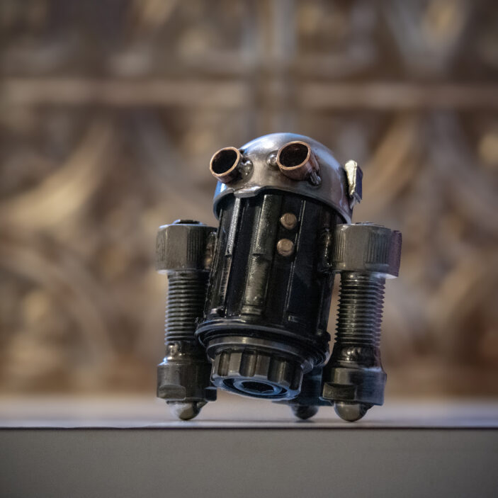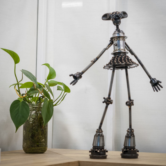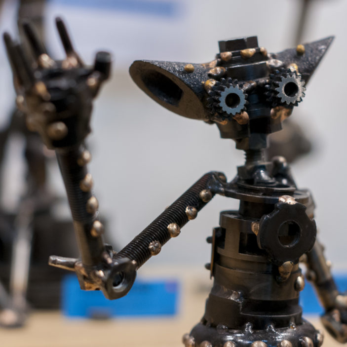 I'm a metal sculptor known as Skunk: I have been honing my craft in transforming interesting and beautiful repurposed metal parts, working them with a hacksaw, a file, a sturdy vise, and a finely wielded TIG welder to create works that embody feelings of wonder, joy, and peace – each with the same mission – to endure for centruries as tireless reminders to hold dear all the important parts of being human.