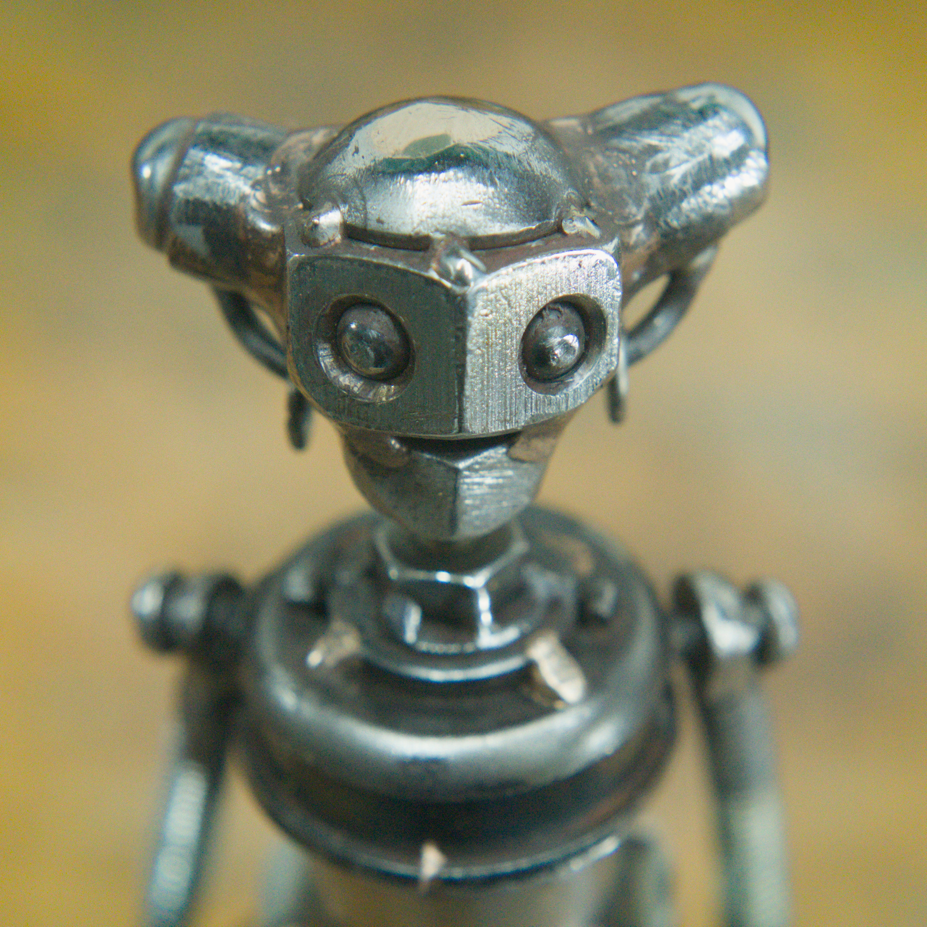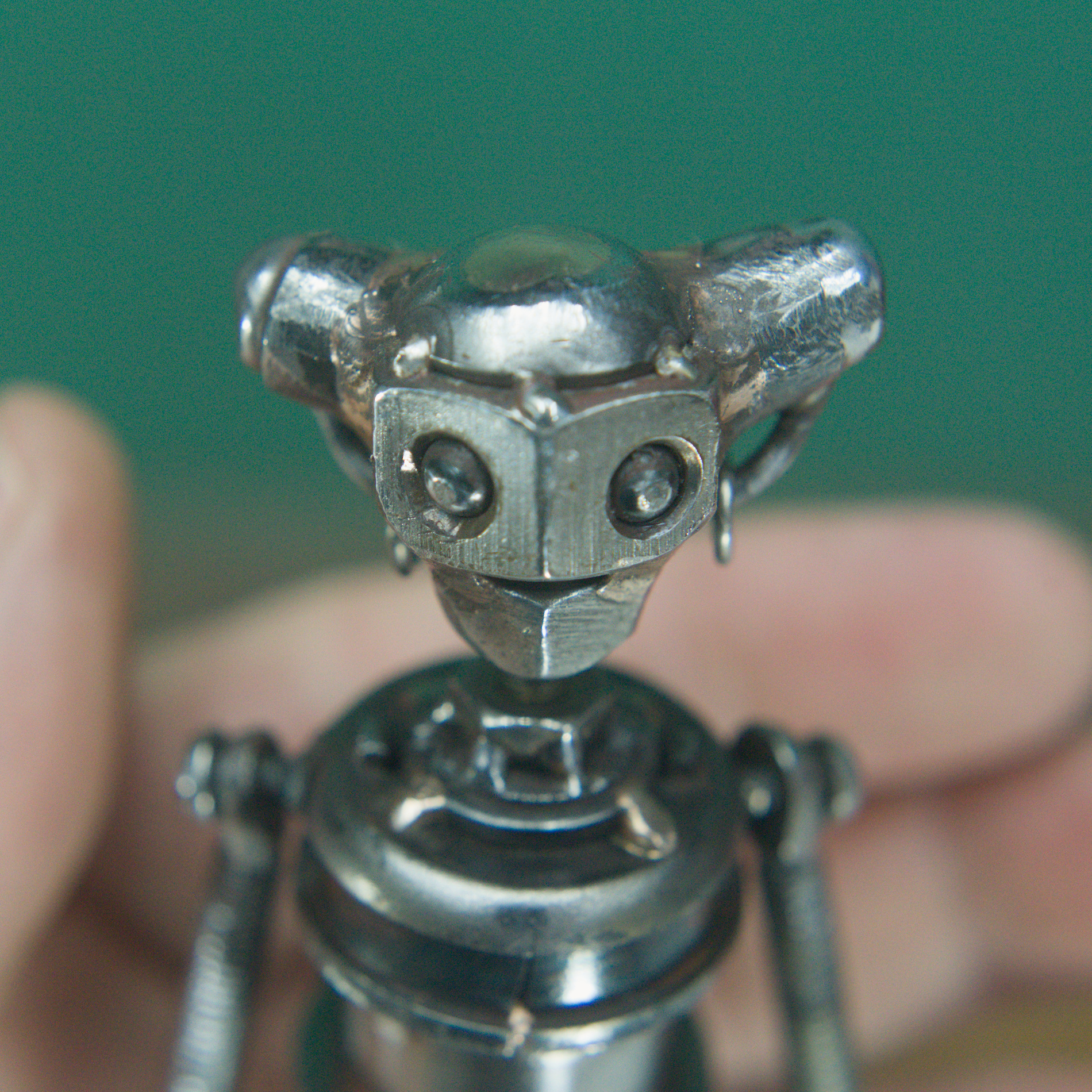 Lots of bronze was added to help Iris reach her final form and give some warm color to her overall look. She’s also the first orbital class robot to have internal limiters in her head so she can’t twist her head all the way around, giving her neck the same range as her human companions – just one of many small wonders on this little darling of a robot.