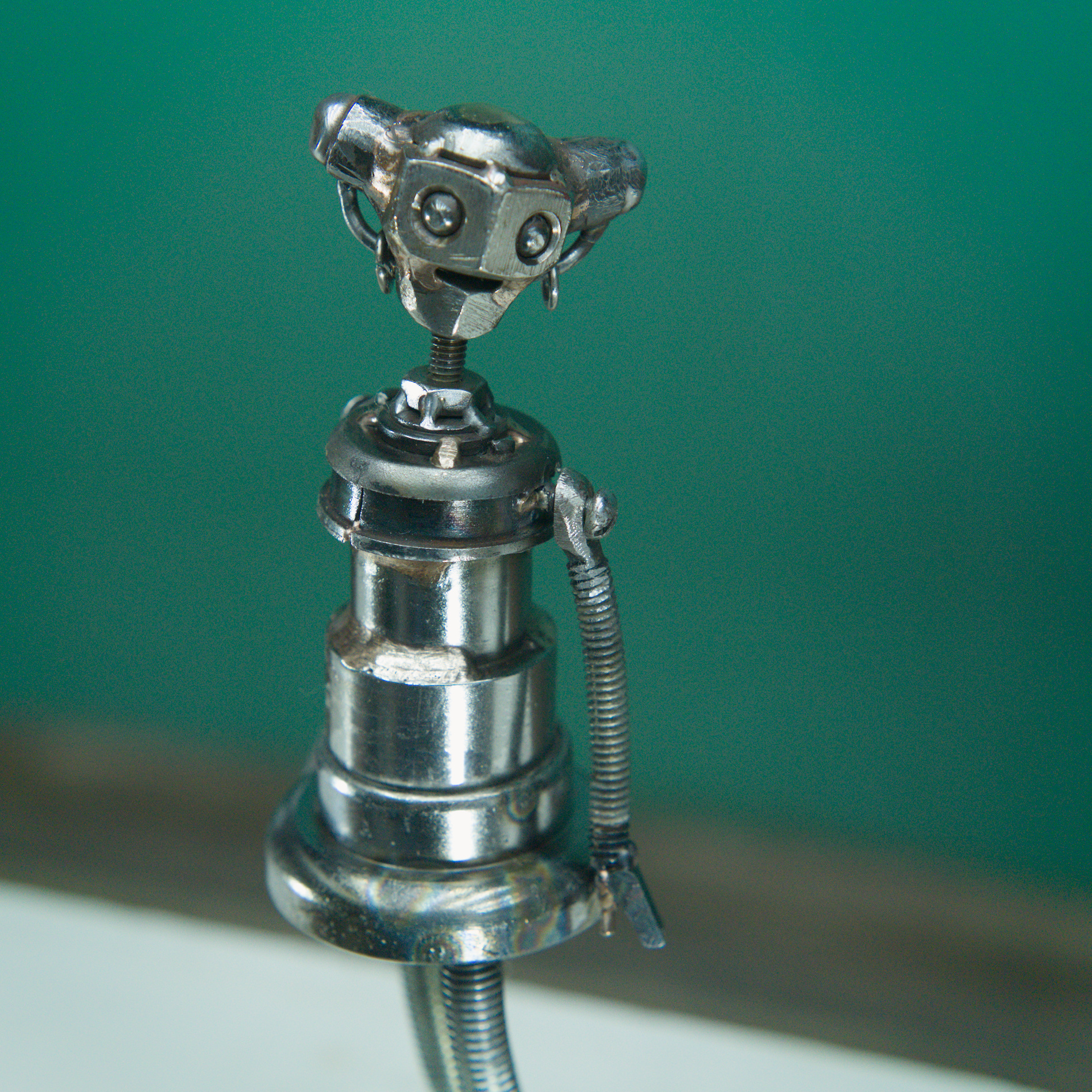 Iris is an orbital-class robot made from rare metal parts, which makes her one-of-a-kind amongst her siblings. The stainless fitting used for her body is quite a bit heavier than you’d expect, which gives her a very pleasant bell-like voice which sings when you ask her to dance.